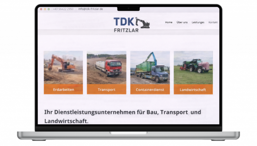 Die neue Website präsentiert die Dienstleistungen von TDK Fritzlar deutlich strukturierter und erleichtert es Interessenten, die passenden Leistungen für ihr Bau- oder Landwirtschaftsprojekt zu finden.