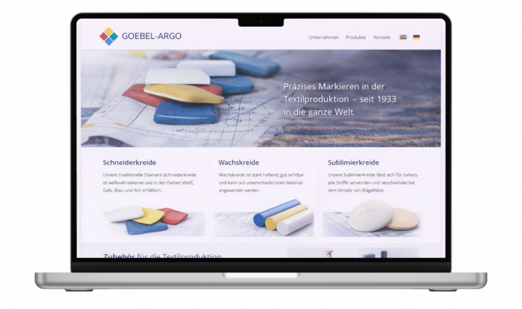 Die Website von Goebel-Argo stellte das Produktsortiment und die Spezialisierung des Unternehmens nur eingeschränkt dar. Besucher konnten zwar Informationen zu einzelnen Produkten finden, jedoch wurde nicht sofort deutlich, welche Lösungen das Unternehmen für die Textil- und Bekleidungsindustrie anbietet.