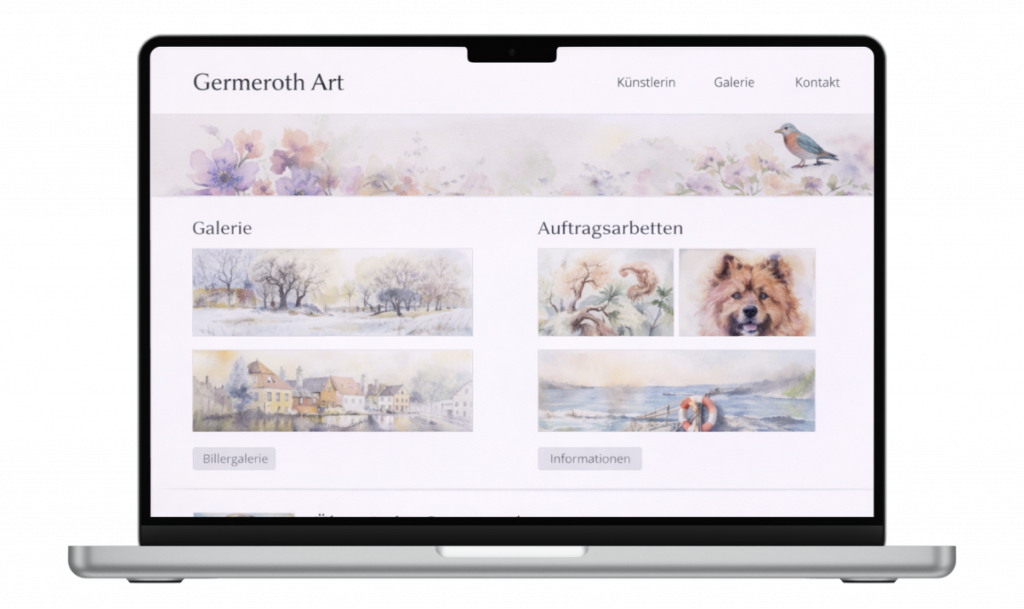 Die neue Website präsentiert die Kunstwerke von Germeroth Art deutlich klarer und hochwertiger und vermittelt Besuchern sofort den individuellen Stil der Künstlerin.