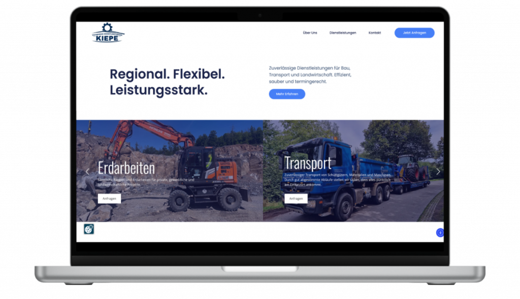 Gerade bei regionalen Dienstleistungsunternehmen ist es wichtig, dass potenzielle Kunden schnell verstehen, welche Arbeiten übernommen werden können. Die vorhandene Website bot jedoch nur eine begrenzte Struktur und führte Besucher nicht klar zu den wichtigsten Informationen.