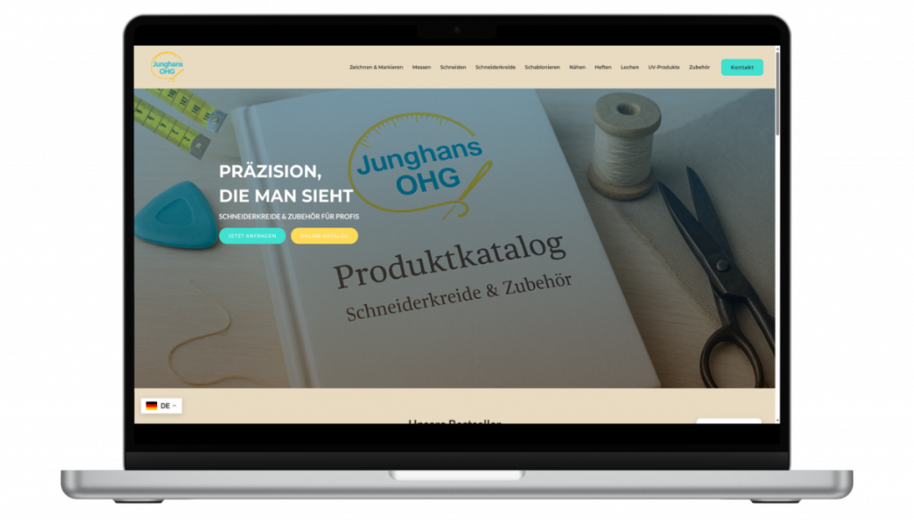 Die bestehende Website stellte das breite Produktsortiment von Gebrüder Junghans nur eingeschränkt übersichtlich dar. Besucher konnten zwar einzelne Produkte finden, jedoch war nicht sofort ersichtlich, welche Kategorien und Werkzeuge für unterschiedliche Arbeitsschritte in der Textilverarbeitung angeboten werden.