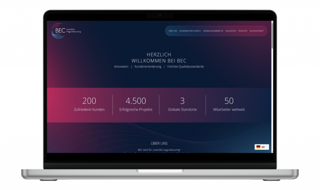 Das Ziel war es, eine moderne Website zu entwickeln, die die Leistungen der BEC GmbH klar strukturiert darstellt und Vertrauen bei potenziellen Kunden schafft.