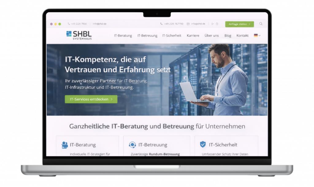 Die neue Website präsentiert die IT-Leistungen des SHBL Systemhauses deutlich strukturierter und verständlicher und stärkt die Wahrnehmung des Unternehmens als kompetenten IT-Partner.